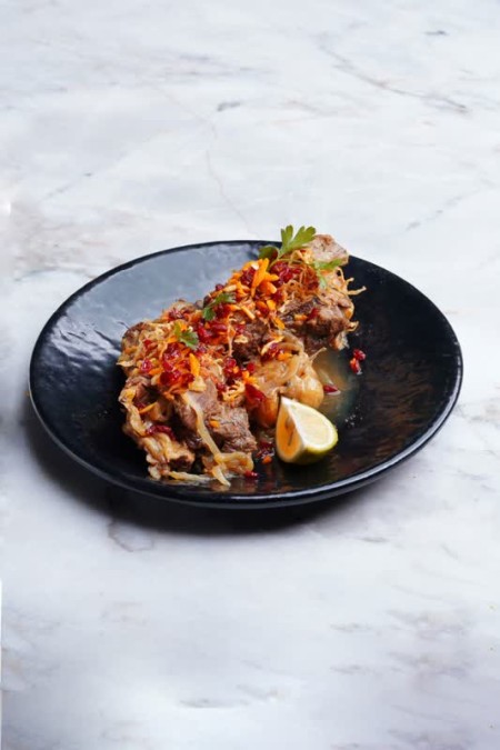 250 گرم گوشت راسته گوسفندی مزه دار شده ، دورچین