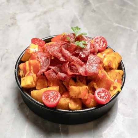سیب زمینی،سس بیگ بنگ،سس چدار،چیپس بیکن،گوجه چری