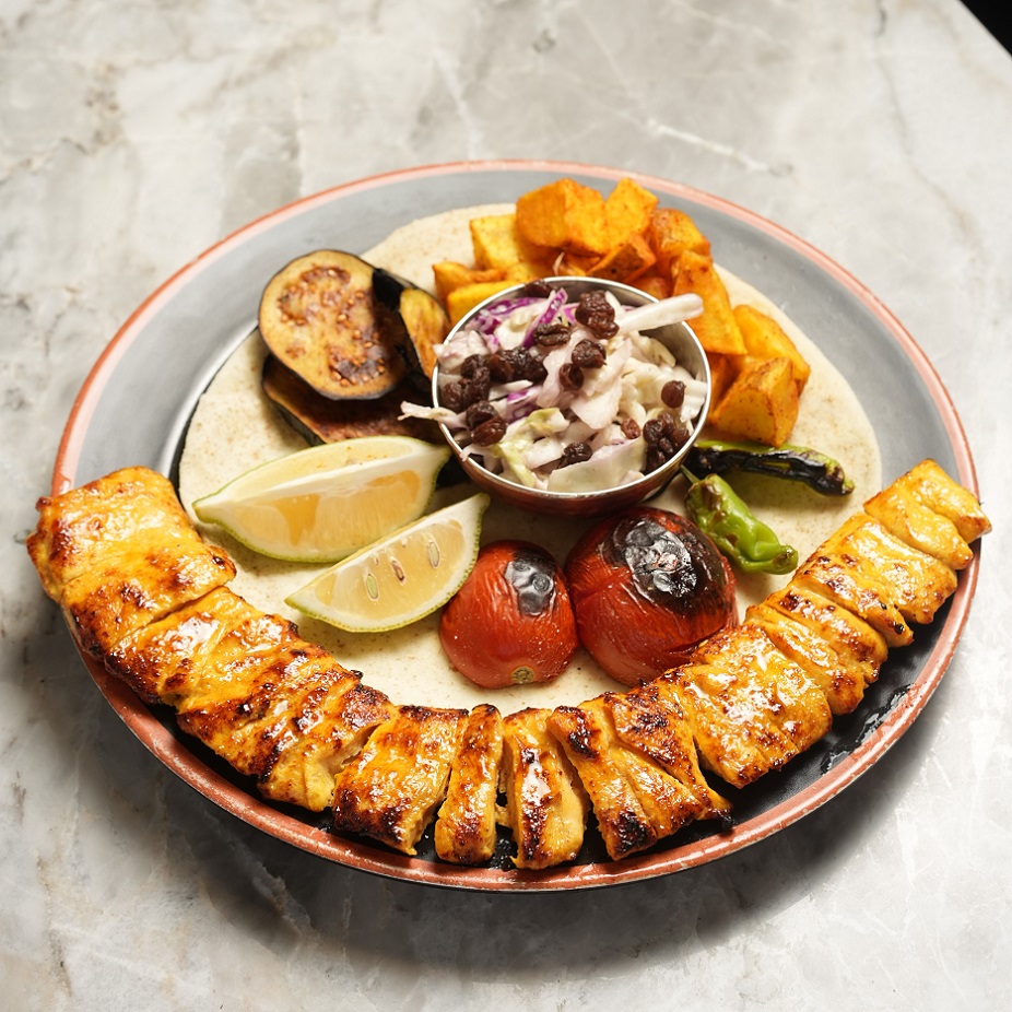 شیشلیک،جوجه ترش،جوجه زعفرانی،جوجه شکاری،دو سیخ کوبیده،خورش ماست،دورچین