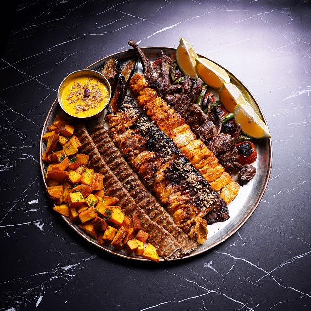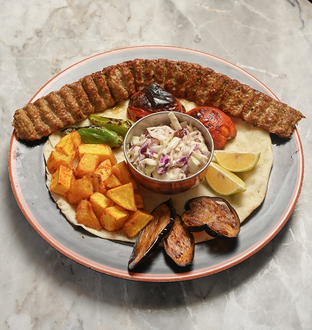 یک عدد پیده کباب - یک عدد پیده دانارستو - یک عدد پیده تاووک - زیتون سیاه - ماست مزه دار - سالاد کلم - سس کچاپ - کاهو